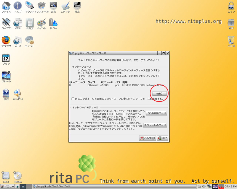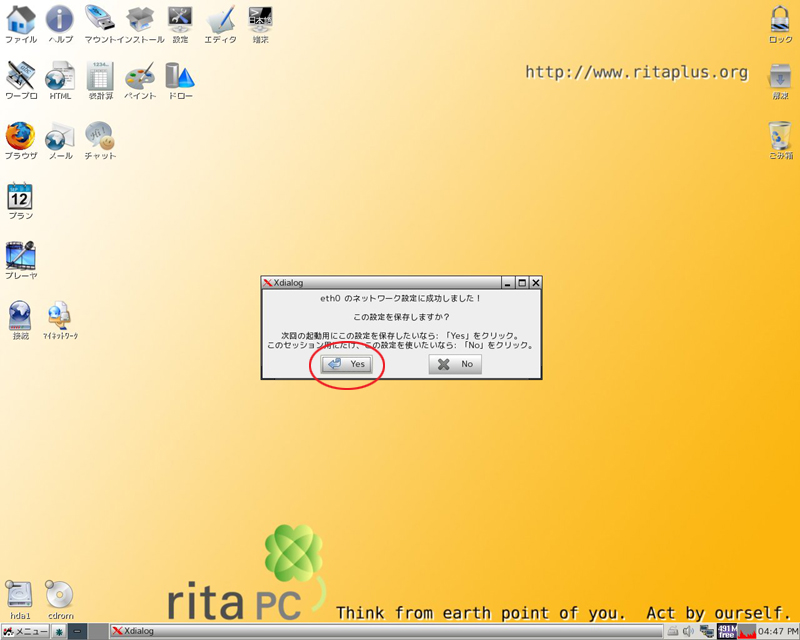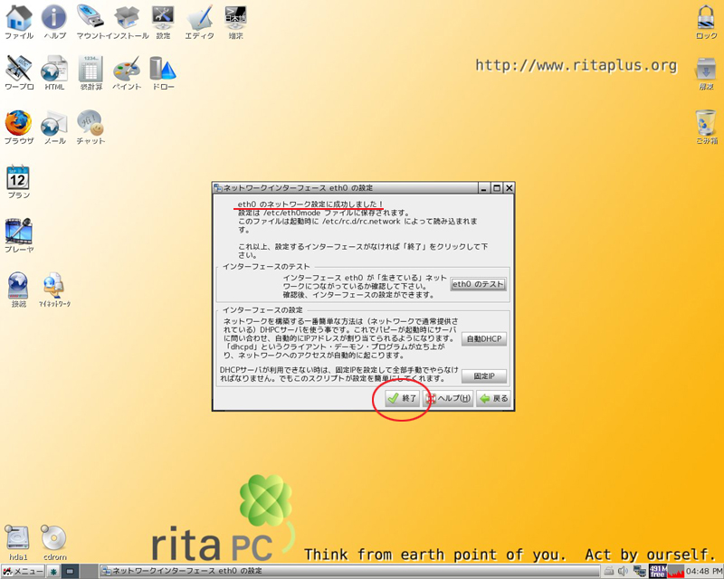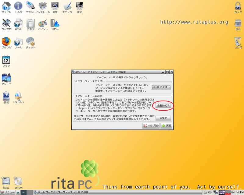 ritaPCインターネット接続簡易マニュアルイーサネット接続(DHCPクライアント)の仕方 ほか... |